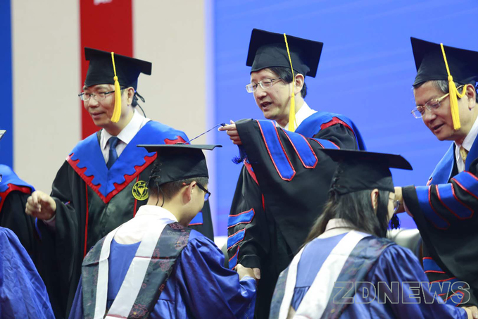 畢業(yè)典禮后的學(xué)位授予儀式上,畢業(yè)研究生在全體與會(huì)師生和家長(zhǎng)的見(jiàn)證下依次接受撥穗,共同經(jīng)歷在浙江大學(xué)的成長(zhǎng)與收獲的光輝時(shí)刻。